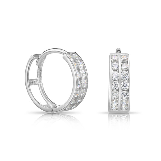 14K Gold Huggie Hoop Earrings | Dazzling Double Row CZ Elegance