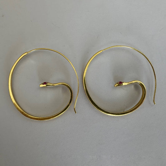 Snake Hoop Earrings with Pink Zircon Eyes | 18K Gold Plated