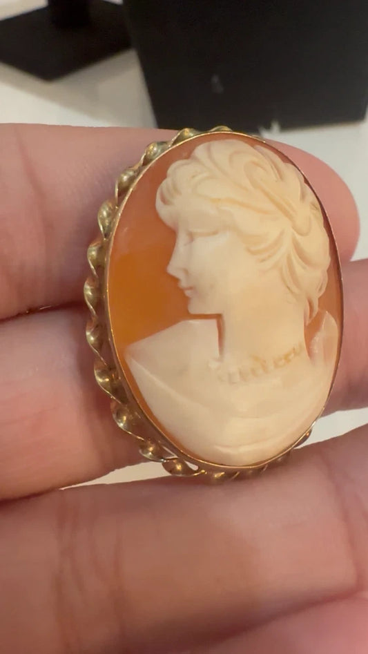 Gorgeous Vintage Left Facing Sorrento 12k Gold Filled Cameo Brooch/Pendant